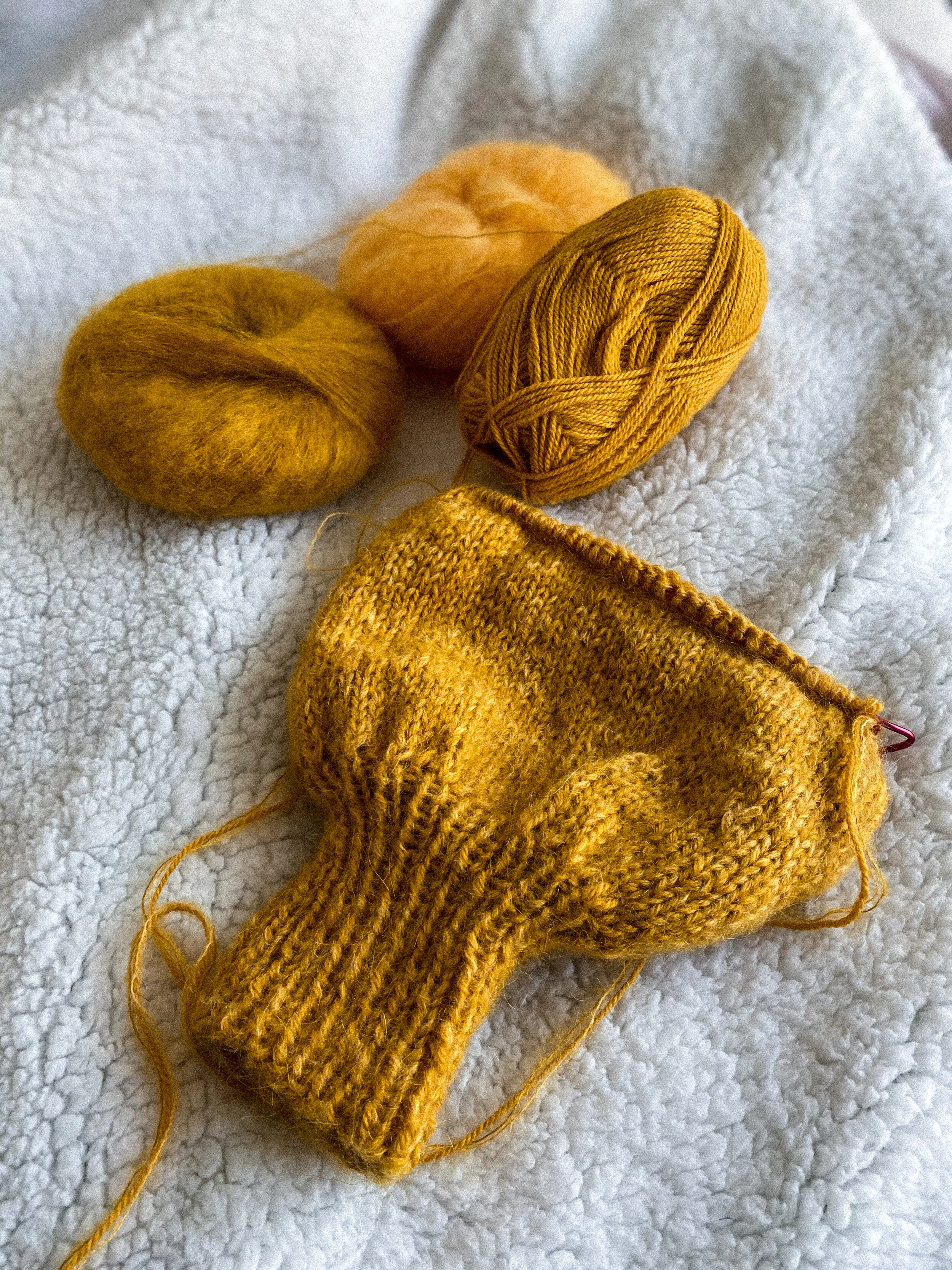 A golden, mango/mustard iteration of the Aquamarlite sweater pattern from @parknknit. The following photos document the process of creating this beautiful pattern with beautiful alpaca and mohair yarn.